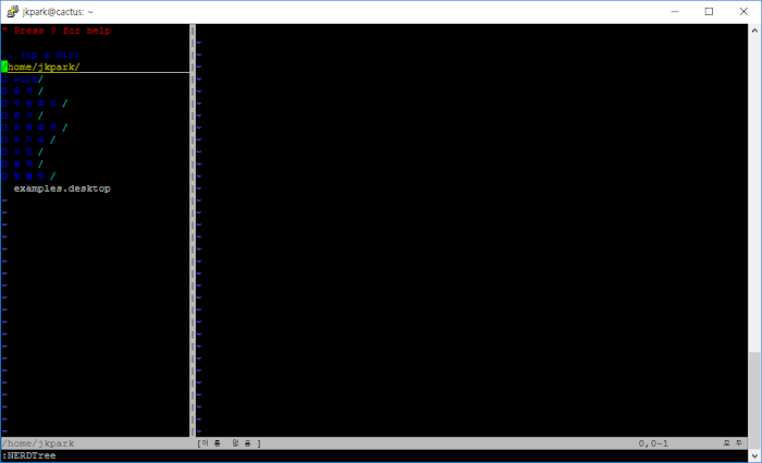 또한 vim 에서 :NERDTree 를 입력후 엔터치면 아래 그림과 같이 NERDTree가 실행된다.